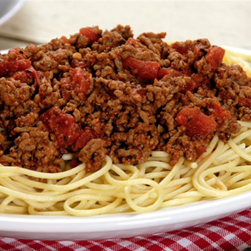 Spaghetti pasta in a delicious meat sauce, is great for any night of the week.