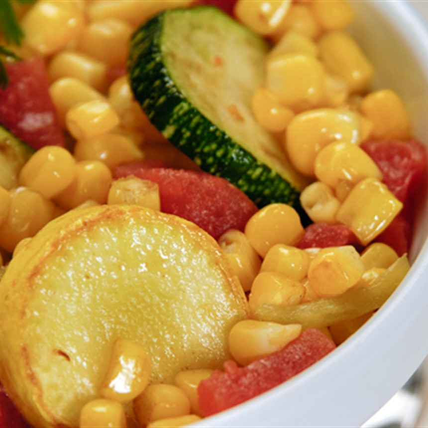Summer squash pair with tomatoes and corn in this easy, flavorful side dish.